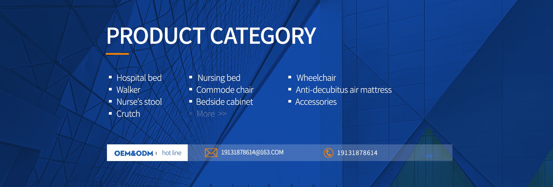 Productos principales:Cama de hospital, cama de enfermería, silla de ruedas, muletas, andador